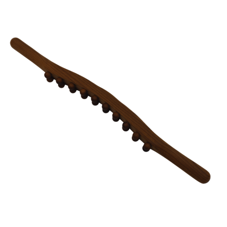 Masażer został wykonany z naturalnego, starannie wykończonego drewna, co zapewnia trwałość, komfort użytkowania oraz przyjemne odczucia podczas masażu. Gładka powierzchnia sprawia, że narzędzie doskonale nadaje się do stosowania zarówno na sucho, jak i z olejkami czy balsamami do masażu.