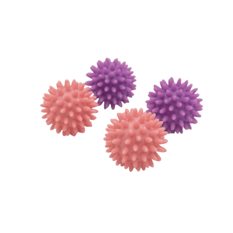 Wypustki rozmieszczone równomiernie na powierzchni piłeczek pobudzają skórę, pomagają rozluźnić napięcia mięśniowe oraz wspierają poprawę krążenia.